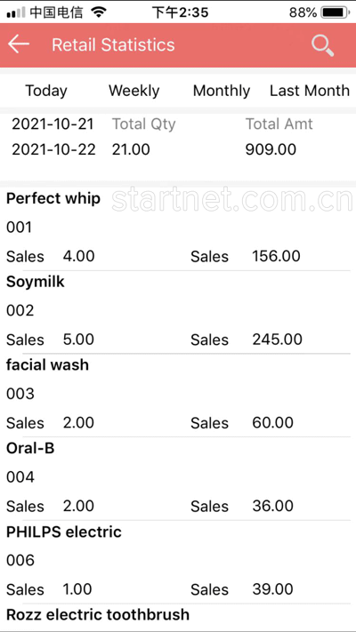 启网中英文POS收银软件APP端零售管理——零售统计报表英文版界面