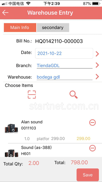 中英文APP端库存管理——入库单英文版界面