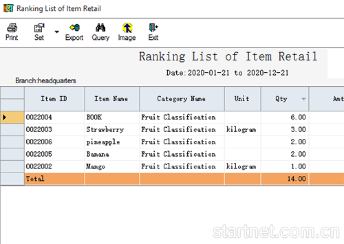 中英文版零售管理——销售排行榜英文界面