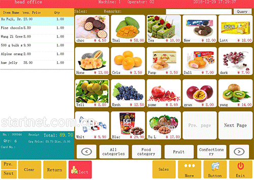 中英文版触摸屏POS收银界面——带货品图片的触屏界面,适合于餐饮、生鲜蔬果等货品数量不多的零售收银场景