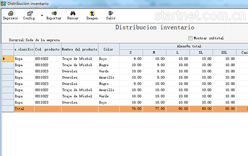 西班牙文版服装多门店库存管理——库存分布表颜色尺码多列
