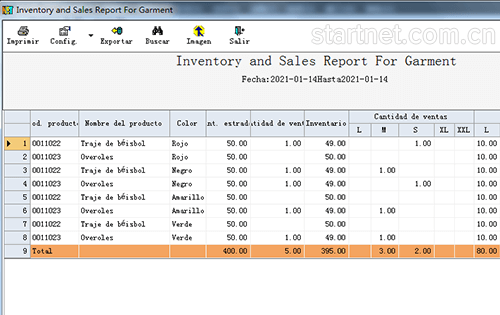 西班牙文版服装销售管理——服装库存销量报表