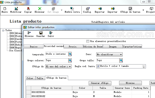 西班牙文版服装库存管理——货品资料颜色尺码二维表
