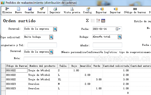 西班牙文版服装连锁配送——补货单颜色尺码多列