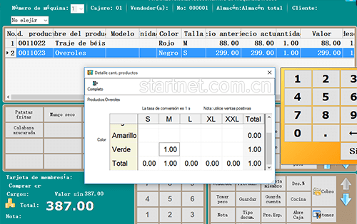 西班牙文版服装零售前台——POS开单颜色尺码二维表