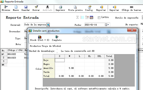 西班牙文版服装库存管理——入库单颜色尺码二维表