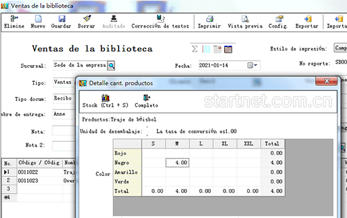 西班牙文版服装销售管理——销售开票颜色尺码二维表