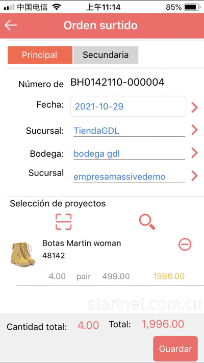 启网西班牙文服装管理软件App端——门店补货单