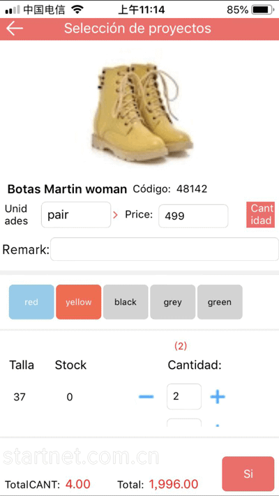 西班牙文服装APP端销售管理——销售开单颜色尺码表
