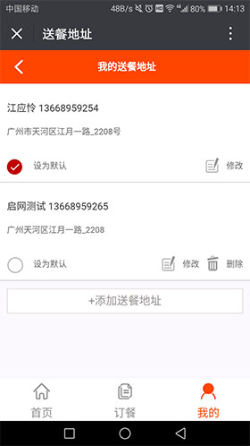 送餐地址界面