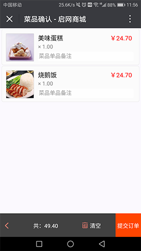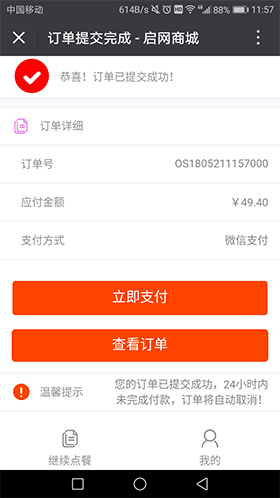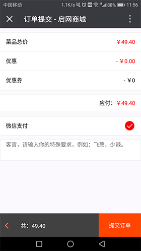 订单提交界面